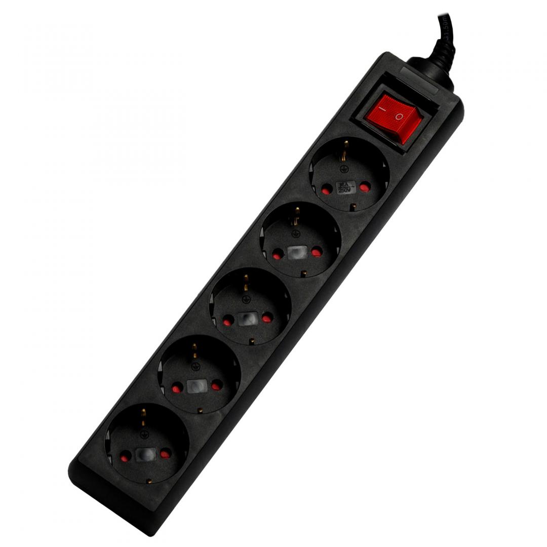 Prelungitor Multipriza Mobil Standard 5x2P+T 1,5m negru