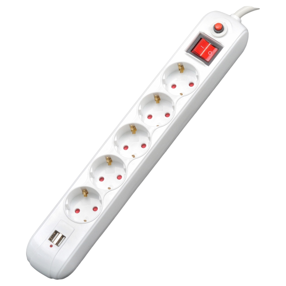 Suport tableta multipriza 3x2P+T, 2 xUSB2,4A, comutator, 1,5m, intrerupator, alb