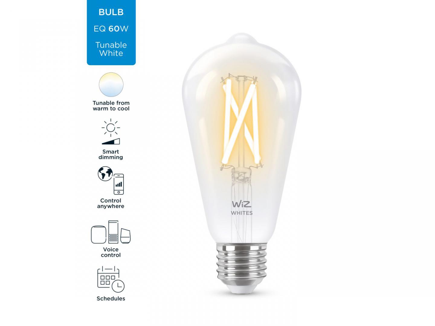 Bec LED inteligent vintage (decorativ) WiZ Connected Filament ClearST64, Wi-Fi,