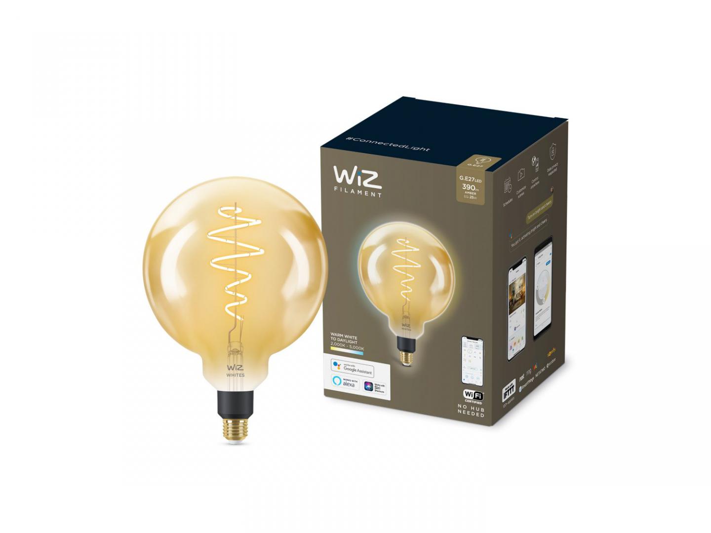 Bec LED inteligent vintage (decorativ) WiZ Connected Filament ClearG125, Wi-Fi,