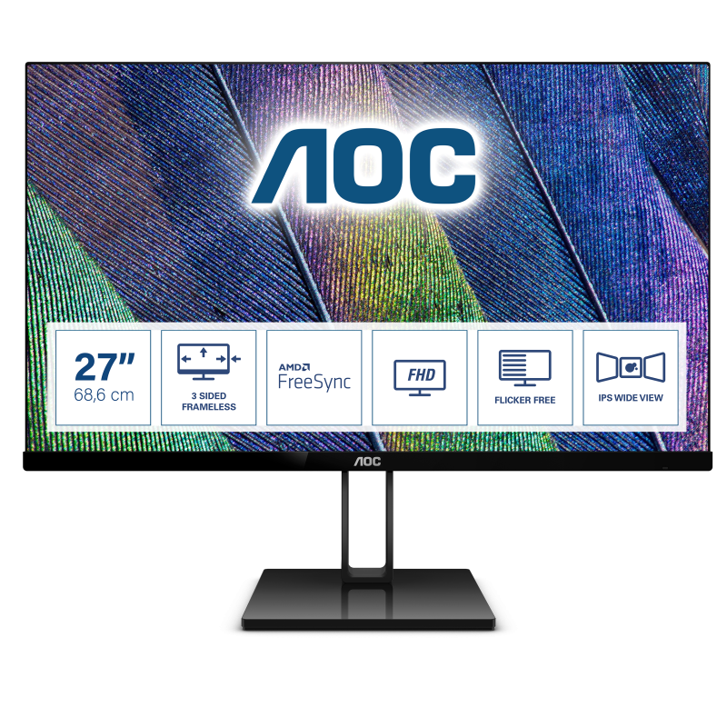 Monitor LED AOC 27V2Q, 27inch, FHD IPS, 5ms, 75Hz, negru