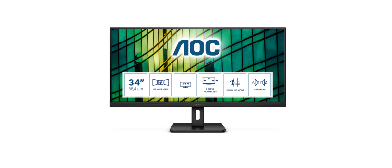 Monitor WLED AOC Q34E2A, 34inch, IPS QHD, 4ms, 75Hz, negru