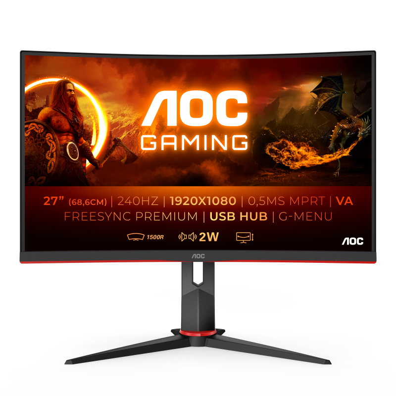 Monitor LED AOC C27G2ZU/BK, 27inch, FHD VA, 0.5ms, 240Hz, negru+rosu