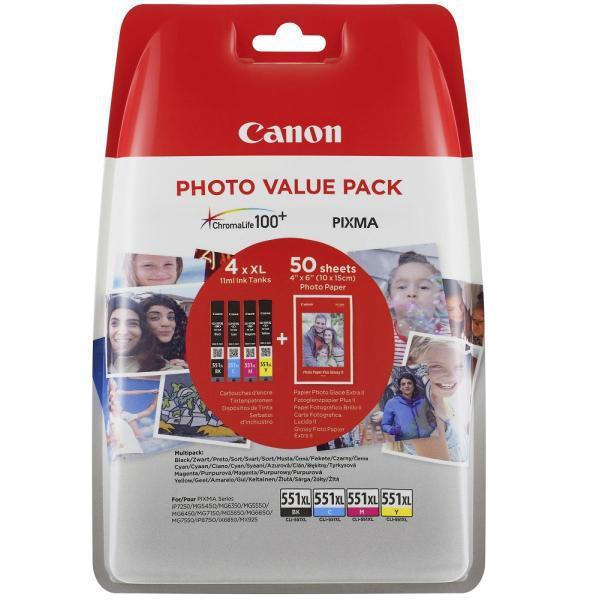 Cartuse cerneala Canon kit CLI551XL,Black, cyan, magenta, yellow + hartie