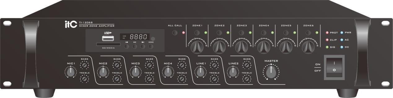 Mixer amplificator cu 6 zone de reglaj ITC TI-5006S, pentru