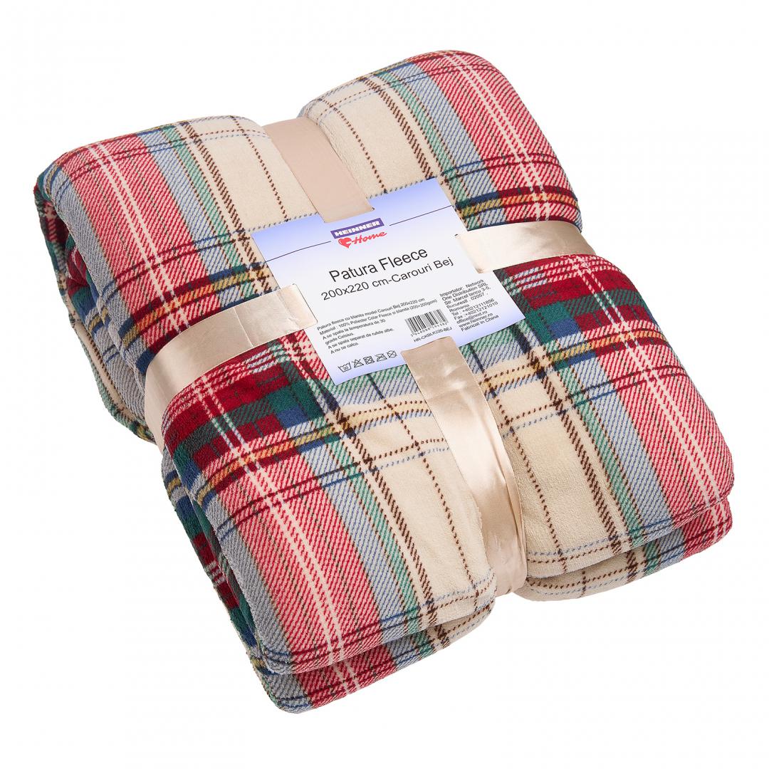 PATURA FLEECE 200X220 CM-CAROURI BEJ
