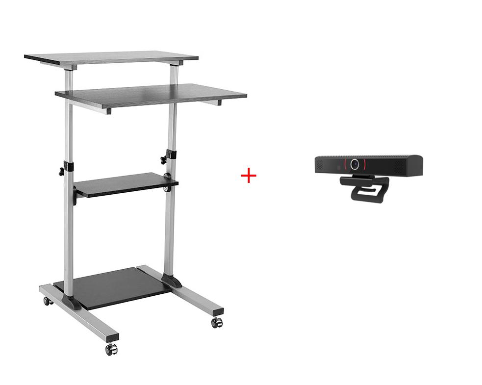 Pachet cu Stand mobil (Workstation) ajustabil pentru calculator, Blackmount WST01 si Webcam All-in-one , conceput pentru sali mici si medii, SeeUp, USB conferencing