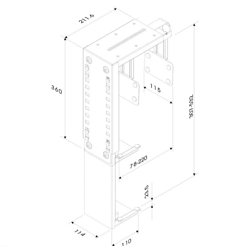 Neomounts by Newstar CPU-D100BLACK Under Desk & On-Wall PC Mount (Suitable PC Dimensions -Height: 30-53 cm / Width: 8-22 cm) – Black Specifications General Min. weight: 0 kg Max. weight: 30 kg Functionality Type: Fixed Width: 8 – 22 cm Height: 30 – 53 cm Height adjustment: Manual https://www.neomounts.com/pc-thin-client/pc-desk-mounts/cpu-d100black- neomounts-by-newstar-cpu-holder/