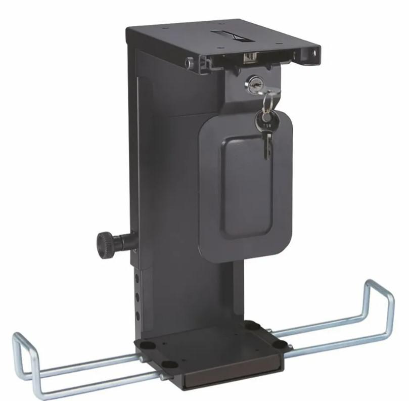 Neomounts by Newstar Lockable Under Desk PC Mount (Suitable PC Dimensions -Height: 20-36 cm / Width: 5-10 cm) – Black Specifications General Min. weight: 0 kg Max. weight: 10 kg Functionality Type: Fixed Width: 5 – 10 cm Height: 20 – 36 cm Height adjustment: Manual https://www.neomounts.com/pc-thin-client/pc-desk-mounts/cpu-d075black- lk-neomounts-by-newstar-cpu-holder/