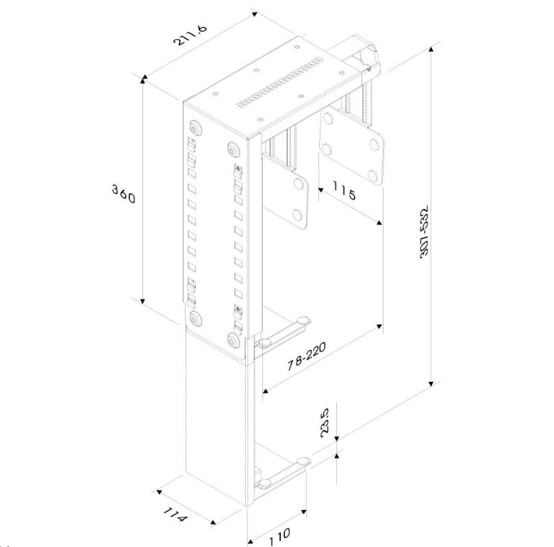 Neomounts by Newstar Under Desk & On-Wall PC Mount (Suitable PC Dimensions -Height: 30-53 cm / Width: 8-22 cm) – Silver Specifications General Min. weight: 0 kg Max. weight: 30 kg Functionality Type: Fixed Width: 8 – 22 cm Height: 30 – 53 cm Height adjustment: Manual https://www.neomounts.com/pc-thin-client/pc-desk-mounts/cpu-d100silver- neomounts-by-newstar-cpu-holder/