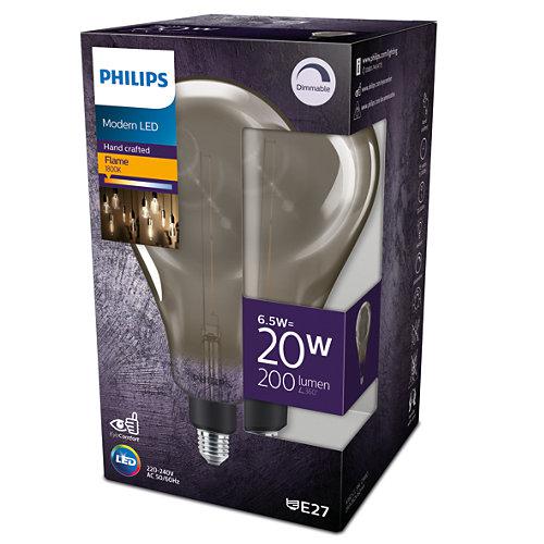 Bec LED vintage (decorativ) Philips Giant A160, EyeComfort, E27, 6.5W (20W), 200 lm, lumina calda (1800K), dimabil, Fumuriu, 29.3×16.2 cm