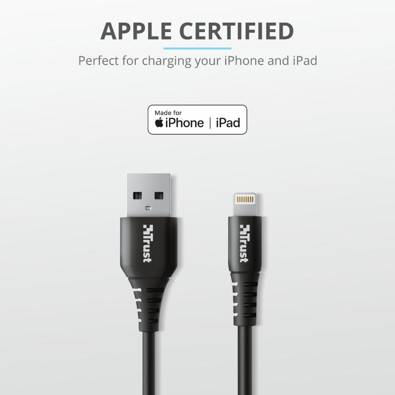 Cablu alimentare Trust Ndura, USB to Lightning, 1m, negru