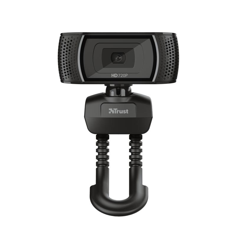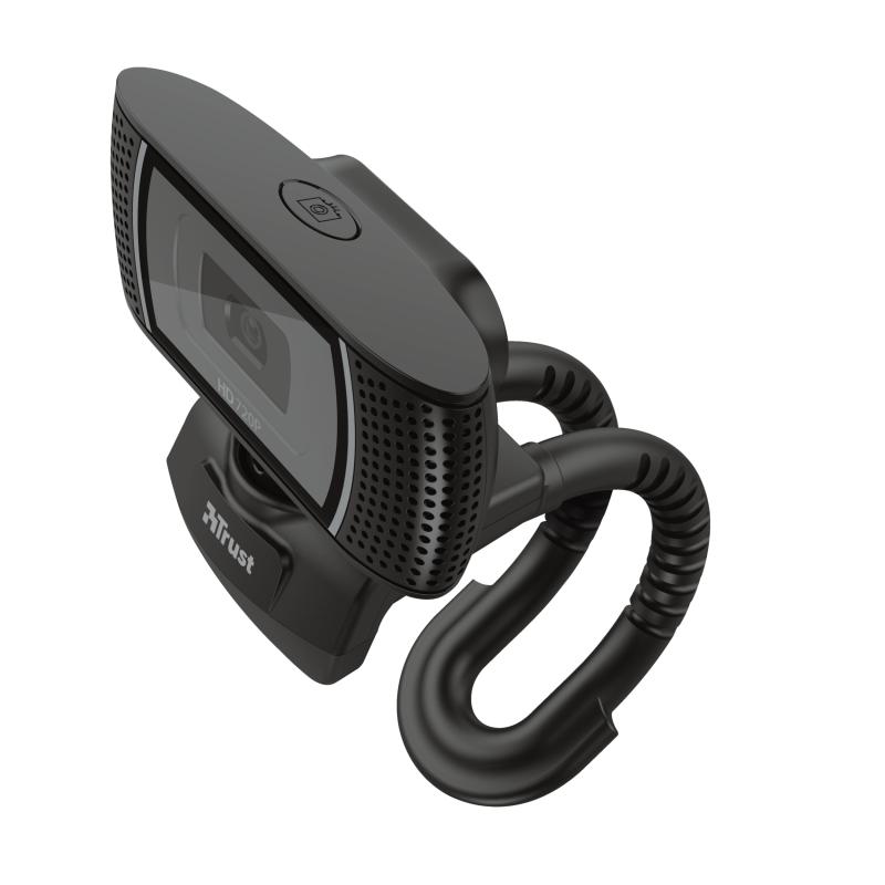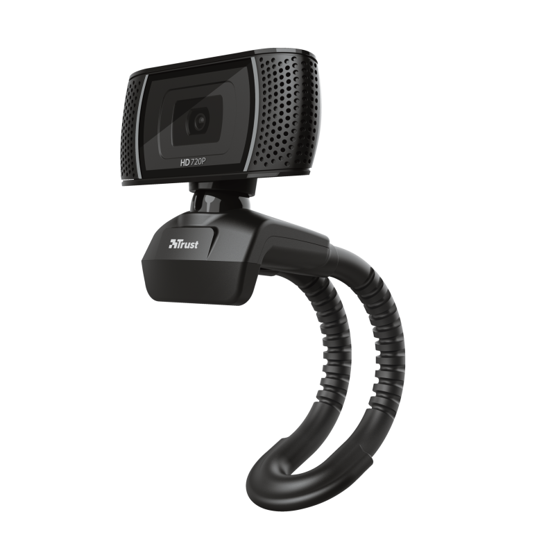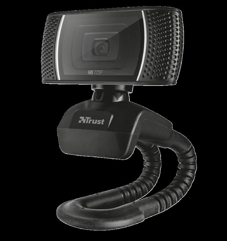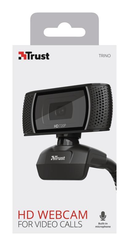 Camera WEB Trust Trino HD Video Webcam Specifications General Plug & play yes Driver needed no Height of main product (in mm) 81 mm Width of main product (in mm) 70 mm Depth of main product (in mm) 62 mm Total weight 88 g Mounting type flexible stand Connectivity Cable length main cable 143 cm USB version 2.0 Audio Microphone built-in yes Features Software yes Imaging Snapshot button yes Viewing angle 52 degrees Automatic white balance yes Face tracking yes Focus type fixed focus Zoom type digital Motion detection no Privacy mode no Max Framerate 30 fps Still image resolution 3200 x 2400 (software) Video resolution 1280 x 720 (software) Lighting Lights no https://www.trust.com/en/product/18679-trino-hd-video-webcam