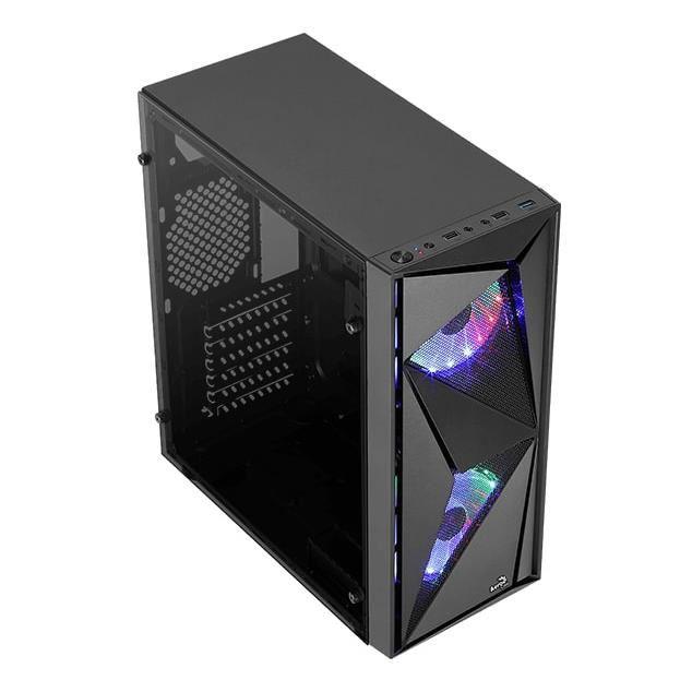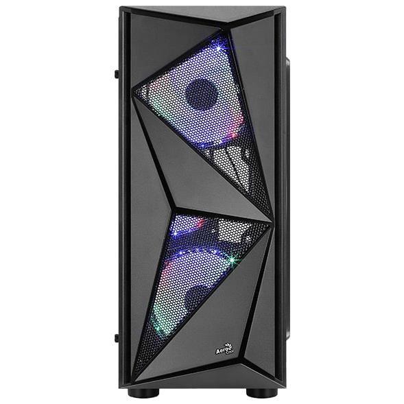 Carcasa Aerocool Glider Cosmo iluminare RGB neagra, SPCC Steel ATX Mid Tower, fara sursa (tip ATX, montata sus), interior vopsit negru, 1×3.5″ (intern), 4×2.5″ (intern), fata – 2x 120mm LED RGB fans (inclus) / 1x 120mm fans (optional), spate – 1x 120mm fan (optional), design premium cu panou lateral din sticla securizata, 1x USB 3.0, 2x USB 2.0, HD AudioATX / microATX / Mini-ITX, sloturi expansiune: x7, inaltime maxima cooler procesor: 157mm, lungime maxima placa video: pana la 325mm fara radiator montat, suport radiatoare water cooling: fata – 1x 120/240mm, spate – 1x 120mm, dimensiuni: 203x440x411mm