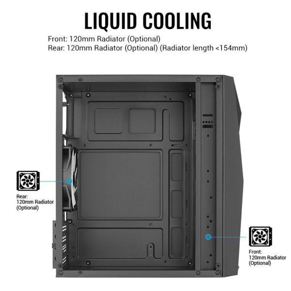 Carcasa Aerocool Raider Mini RGB neagra, SPCC Steel ATX Mini Tower, fara sursa (tip ATX, montata sus), interior vopsit negru, 2×3.5” (intern), 1×2.5” (intern), fata – 1x 120mm RGB fans (inclus) / 1x 120mm fan (optional), spate – 1x 120mm RGB fan (inclus), designpremium cu panou lateral din sticla securizata si panou frontal iluminat RGB, 1x USB 3.0, 1x USB 2.0, HD Audio, microATX / Mini-ITX, sloturi expansiune: x4, inaltime maxima cooler procesor: 159mm, lungime maxima placa video: 285mm fara a monta radiator in parteafrontala, suport radiatoare water cooling: fata – 1x 120mm , spate – 1x 120mm (radiator mai mic de 154mm), dimensiuni (HxWxD):352.5x196x345mm, greutate: 4.15kg