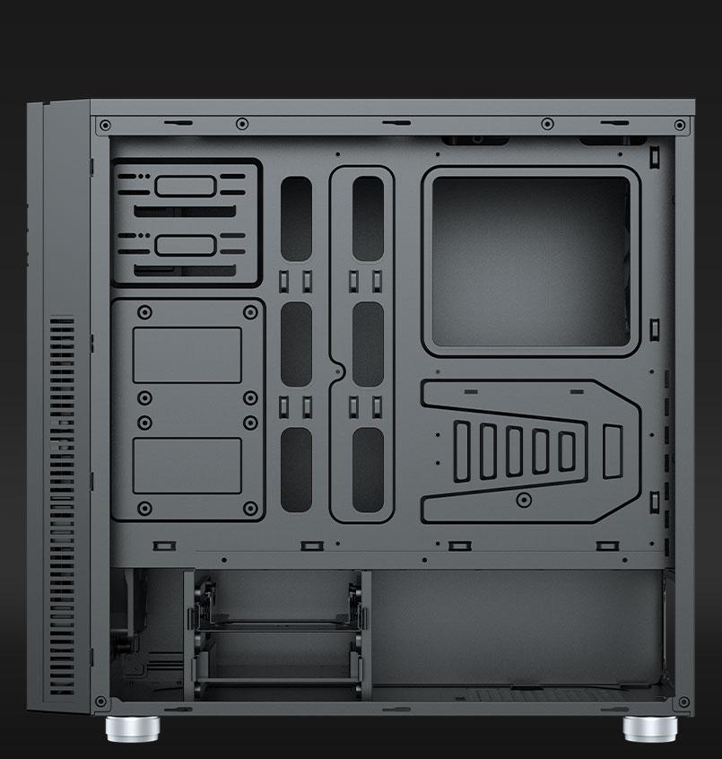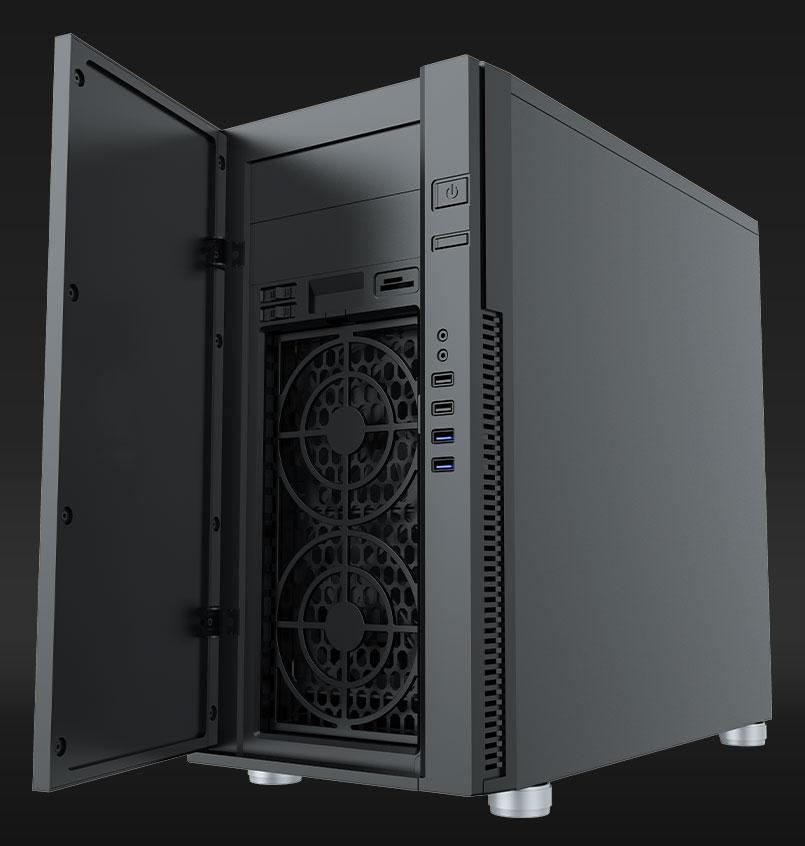 • Special features: front panel with hinge, sound absorbing material, SD + MicroSD card reader, fans speed controller, cable management outlets