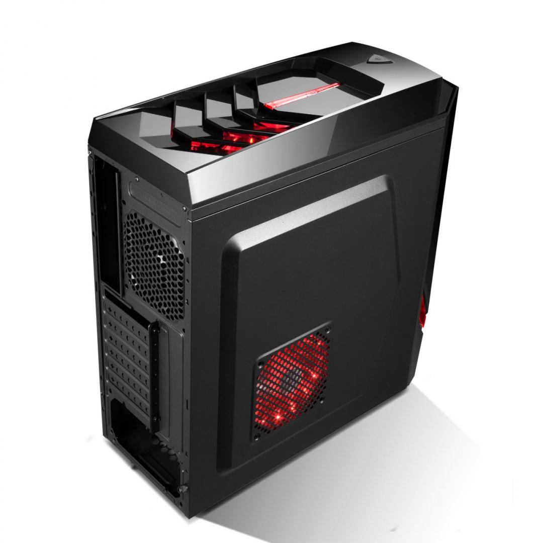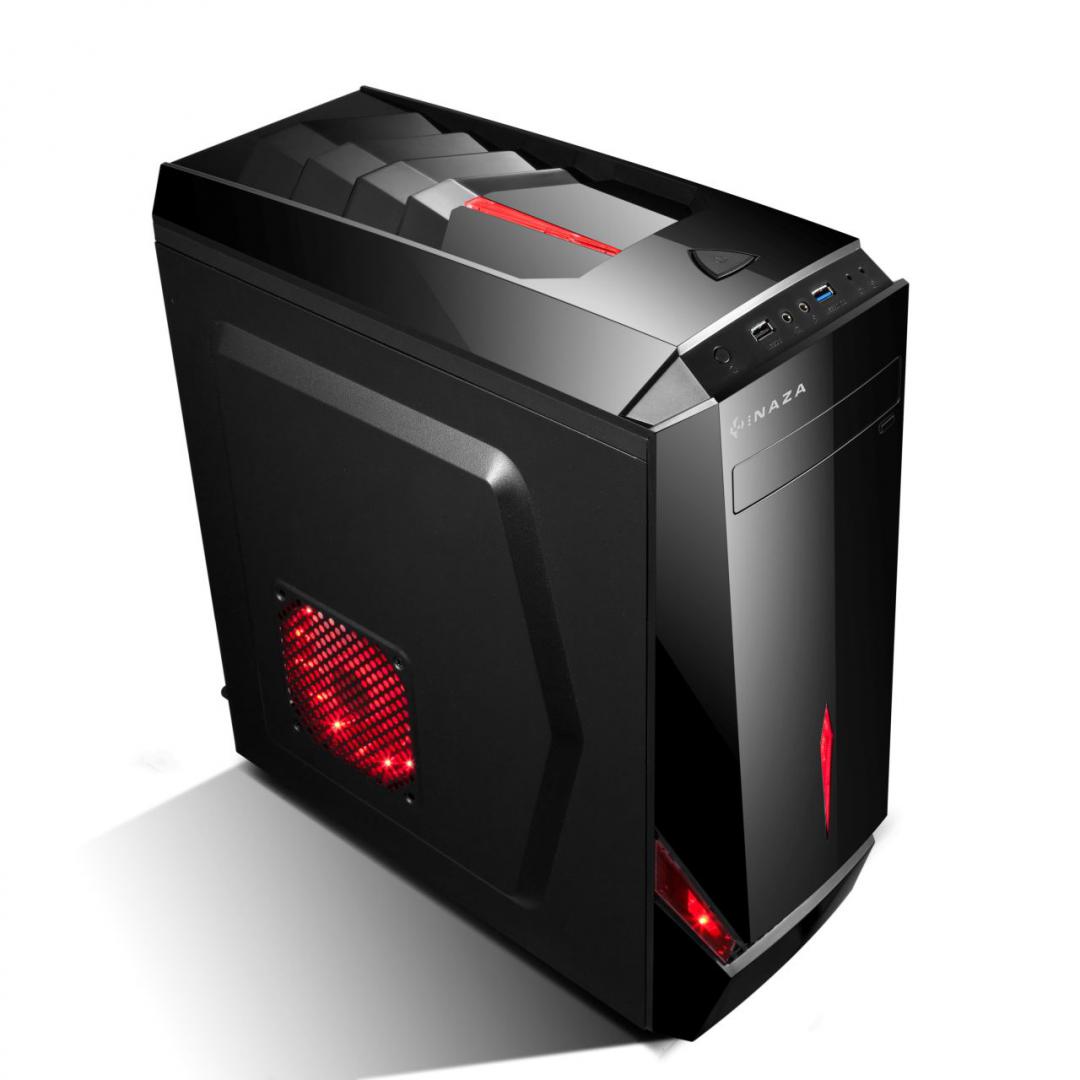 Carcasa Inaza X-Blade neagra, SPCC Steel ATX Mid Tower, fara sursa (tip ATX, montata jos), interior vopsit negru, 1x 5.2” (intern),2×2.5” (intern), 2x 3.5” (intern), fata – 1x 120mm LED fRGB fans (inclus), spate – 1x 120mm LED fRGB fan (inclus), tavan – 2x 120mmfans (optional), 2x USB 3.0, HD Audio, ATX / microATX / Mini-ITX, sloturi expansiune: x7, inaltime maxima cooler procesor: 160mm,lungime maxima placa video: 345mm, suport radiatoare water cooling: tavan – 1x 240mm, dimensiuni (HxWxD): 415x192x418mm, greutate:4.2kg