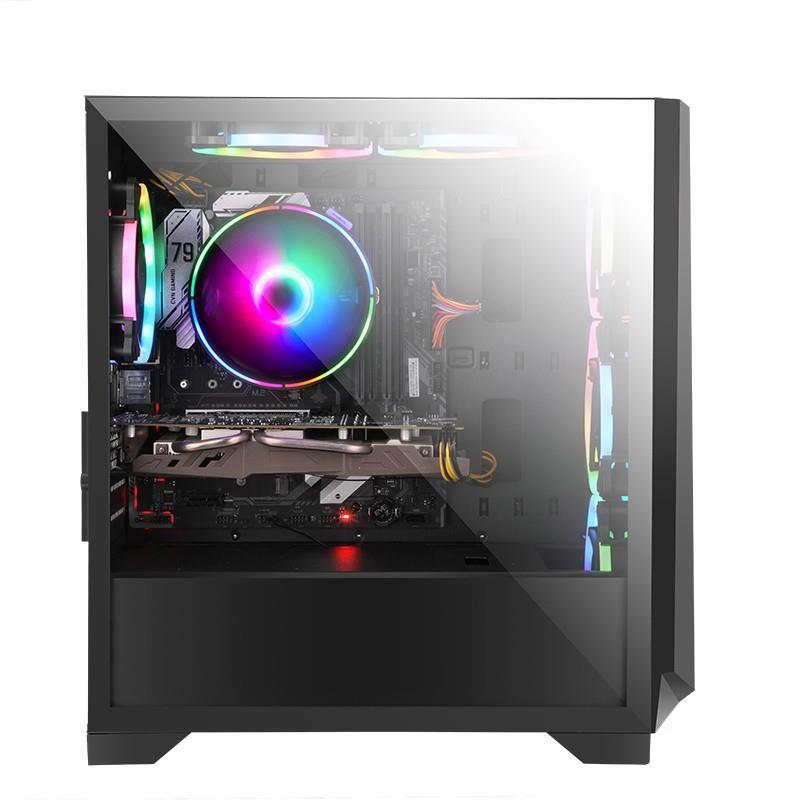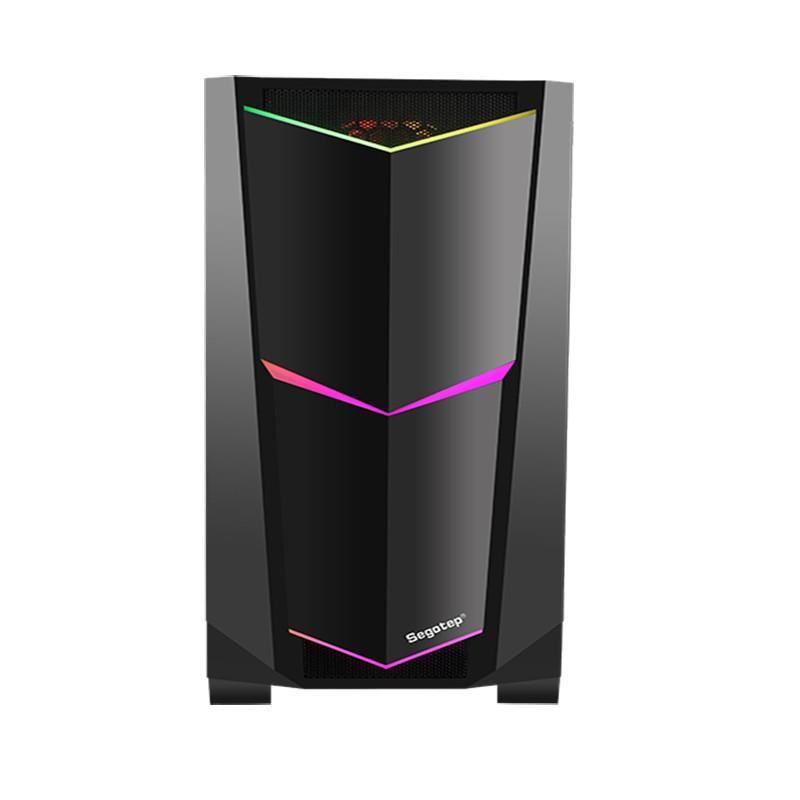 Carcasa Segotep Ares neagra, SPCC Steel ATX Mid Tower, fara sursa (tip ATX, montata jos), interior vopsit negru, 2x 3.5″ (intern),2x 2.5″ (intern), fata – 3x 120mm / 2x 140mm fan (optional), spate – 1x 120mm aRGB LED fan (inclus,pozitie ajustabila), tavan – 2×120/140mm fan (optional), design premium cu panou lateral din sticla securizata si panou frontal iluminat RGB, 1x USB 3.0, 2x USB2.0, HD Audio, microATX / Mini-ITX, sloturi expansiune: x4, inaltime maxima cooler procesor: 165mm, lungime maxima placa video:300mm cu radiator montat sau 330mm fara radiator montat in partea frontala, dimensiuni: 400x210x425mm