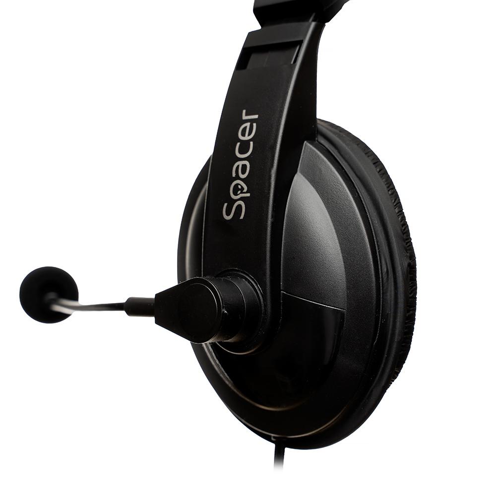 Casti cu micr. Spacer, cu fir, multimedia, 2x Jack 3.mm, microfon pe brat, driver 40mm, 20Hz-20000Hz, 2m, negru