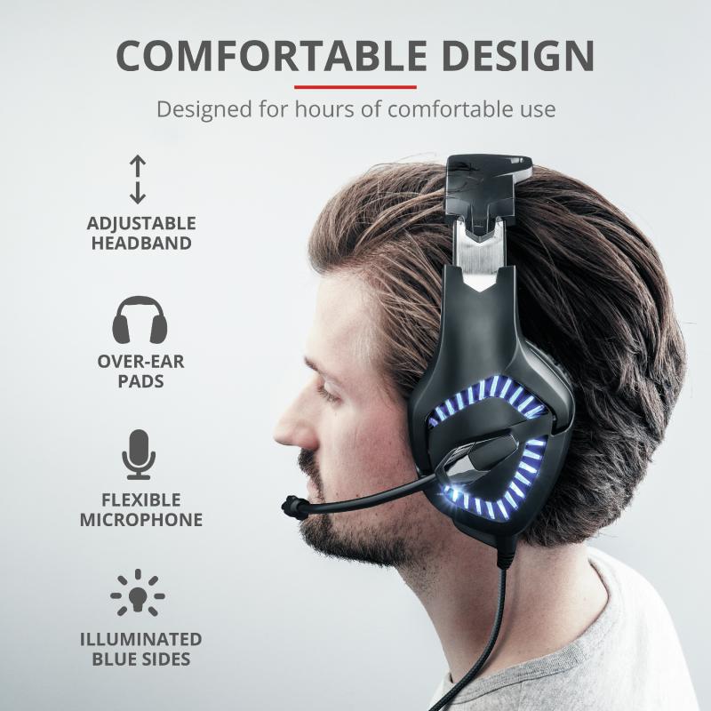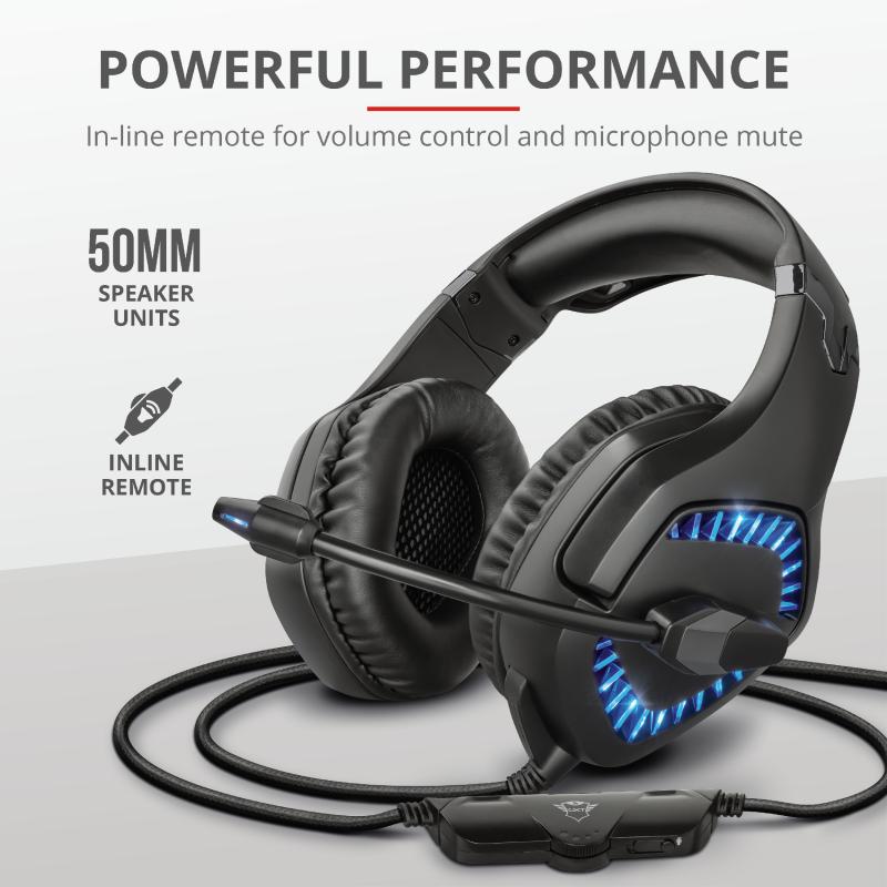 Casti cu microfon Trust GXT 460 Varzz Illuminated Gaming, negru