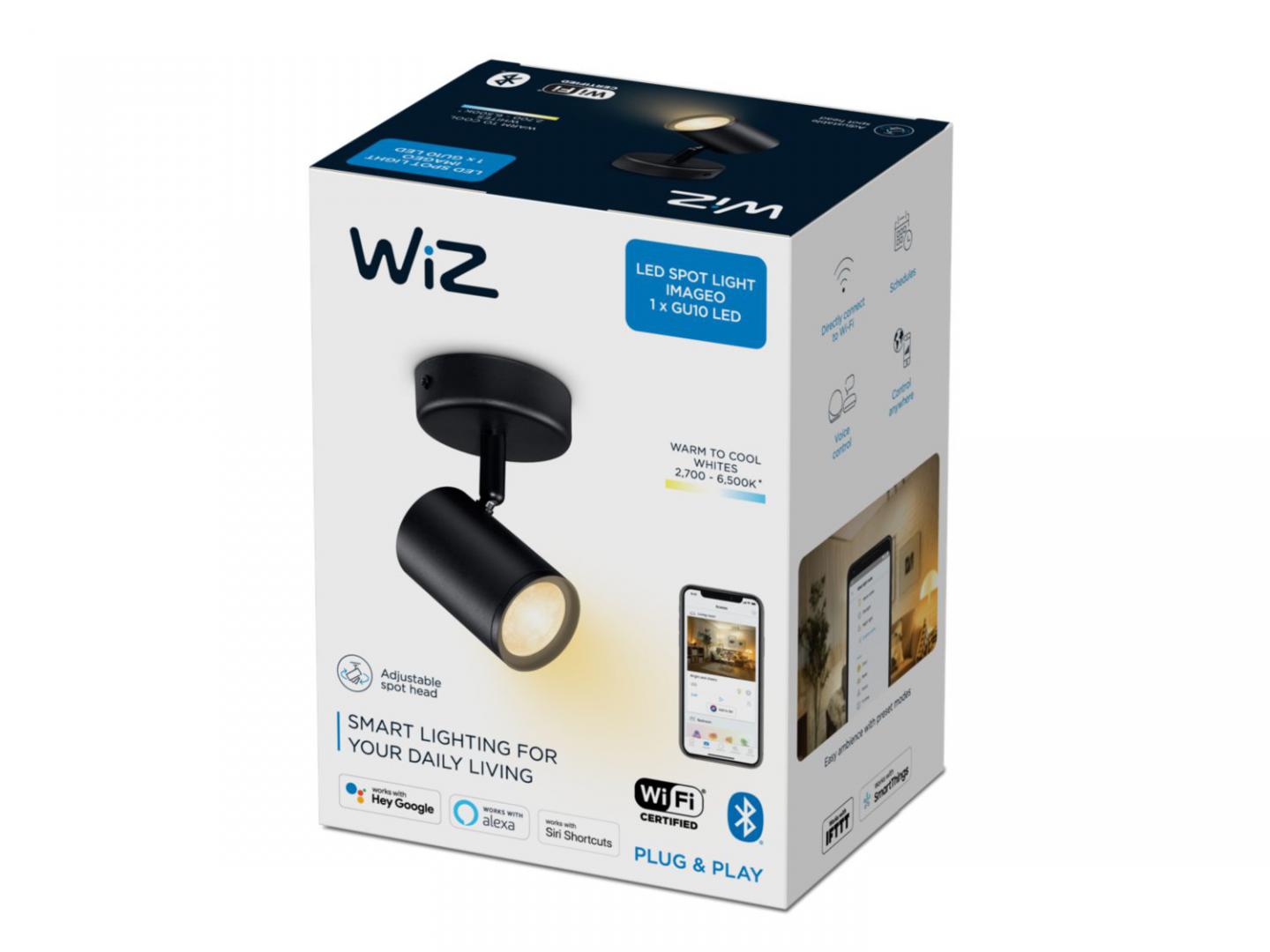 Spot LED RGB WiZ Imageo, Wi-Fi, Bluetooth, 4.9W, 345 lm, lumina alba si color (2700-6500K), IP20, Metal, Negru