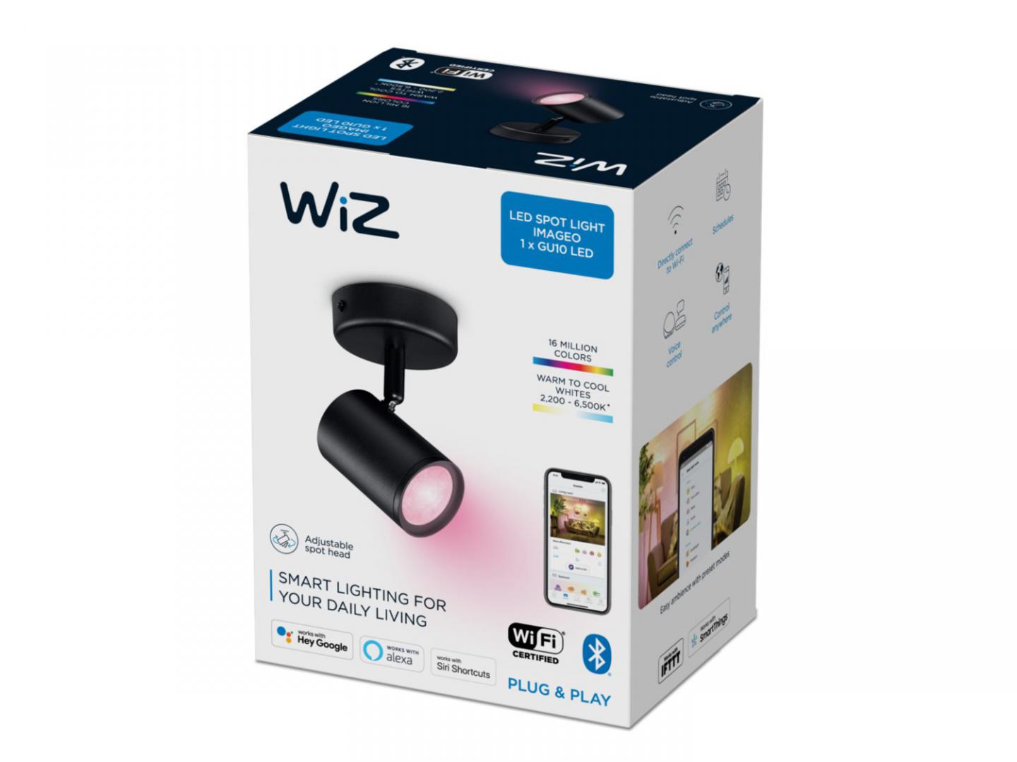 Spot LED RGB WiZ Imageo, Wi-Fi, Bluetooth, 4.9W, 345 lm, lumina alba si color (2200-6500K), IP20, Metal, Negru