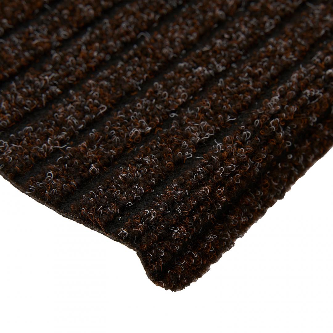 Material : 100% Polipropilena, greutate totala 1130 GSM, greutate tesatura 560 GSM, inaltime tesatura 3mm, inaltime totala covoras 6.6 mm. Spate anti-derapant, sistem prindere cu benzi adezive . Recomandat pentru trafic de uz mediu