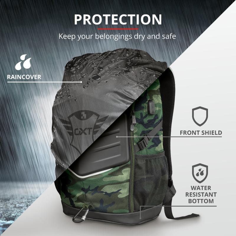Rucsac Trust GXT 1255 Outlaw Gaming Backpack 15.6″ Camo Specifications General Type of bag backpack Number of compartments 4 Max. laptop size 15.6 ” Volume 20 L Height of main product (in mm) 520 mm Width of main product (in mm) 340 mm Depth of main product (in mm) 160 mm Weight of main unit 850 g Features Reflective areas no Rain cover included yes Checkpoint friendly yes Protection Type of case hardcase Hardened bottom yes Waterproof no Shock absorption yes