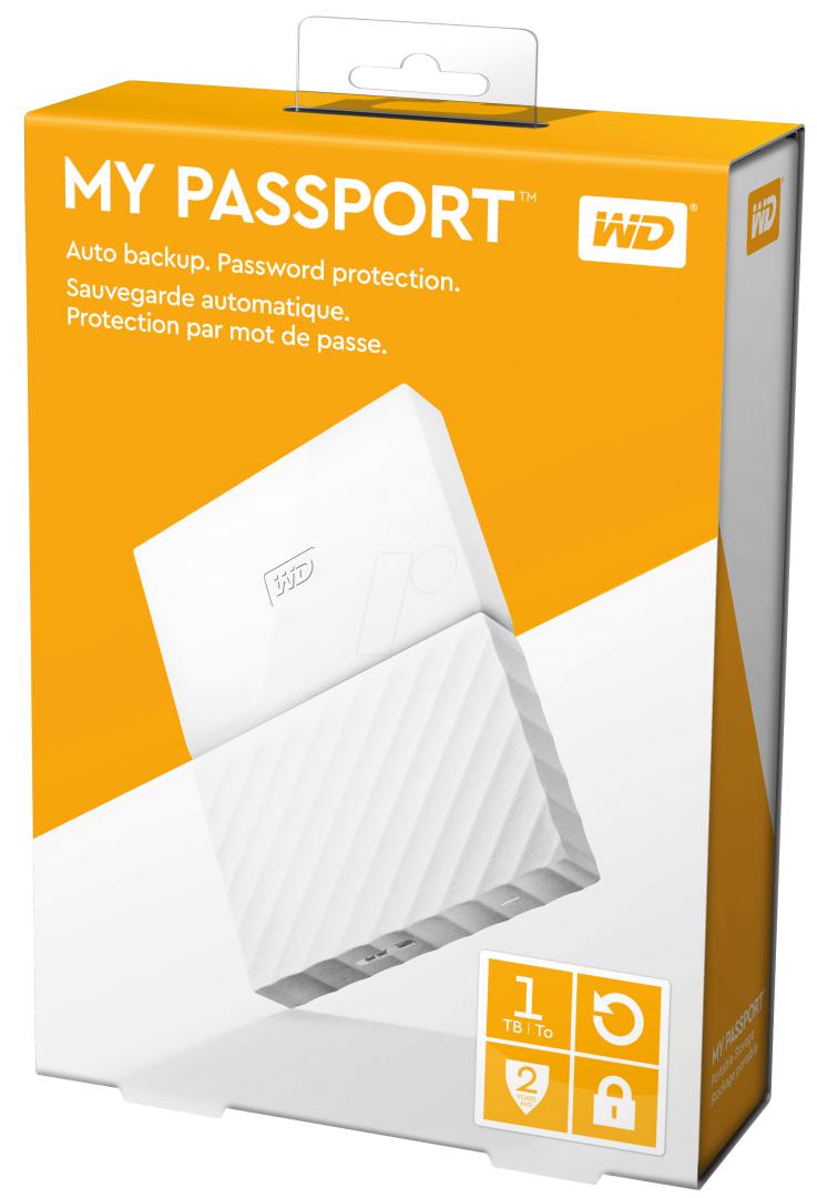 HDD extern WD, 1TB, My Passport, 2,5″ USB 3.0, alb, WD Backup™, WD Security™ and WD Drive Utilities™ software