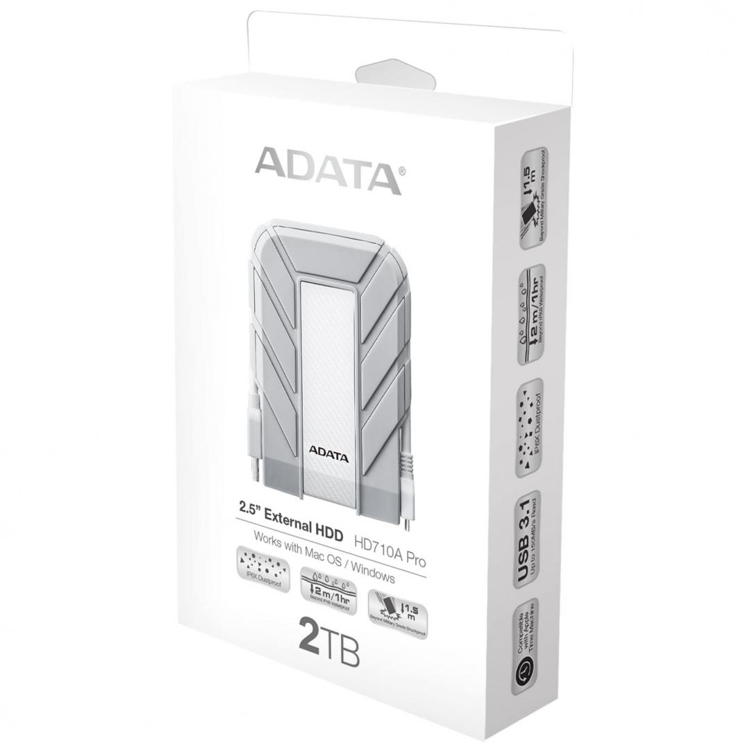 HDD extern ADATA, 2TB, HD710 PRO, 2.5″, USB 3.1, p Pastic si Silicon, Rezistent la socuri, Alb