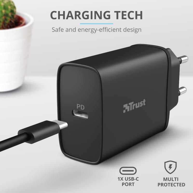 Incarcator rapid pentru perete Qmax 18W Ultra-Fast USB-C Wall Charger with PD Specifications General Number of USB ports 1 Height of main product (in mm) 86 mm Width of main product (in mm) 43 mm Depth of main product (in mm) 24 mm Total weight 53 g Protection Protections over-current, over-heat, over-load, short-circuit Input Power plug type EU Power source wall socket Input power 20W Output Charging technology USB PD2.0 Output specification – Port 1 18W, PD, USB-C USB port C types 1 Total output power (max): A, W 18W