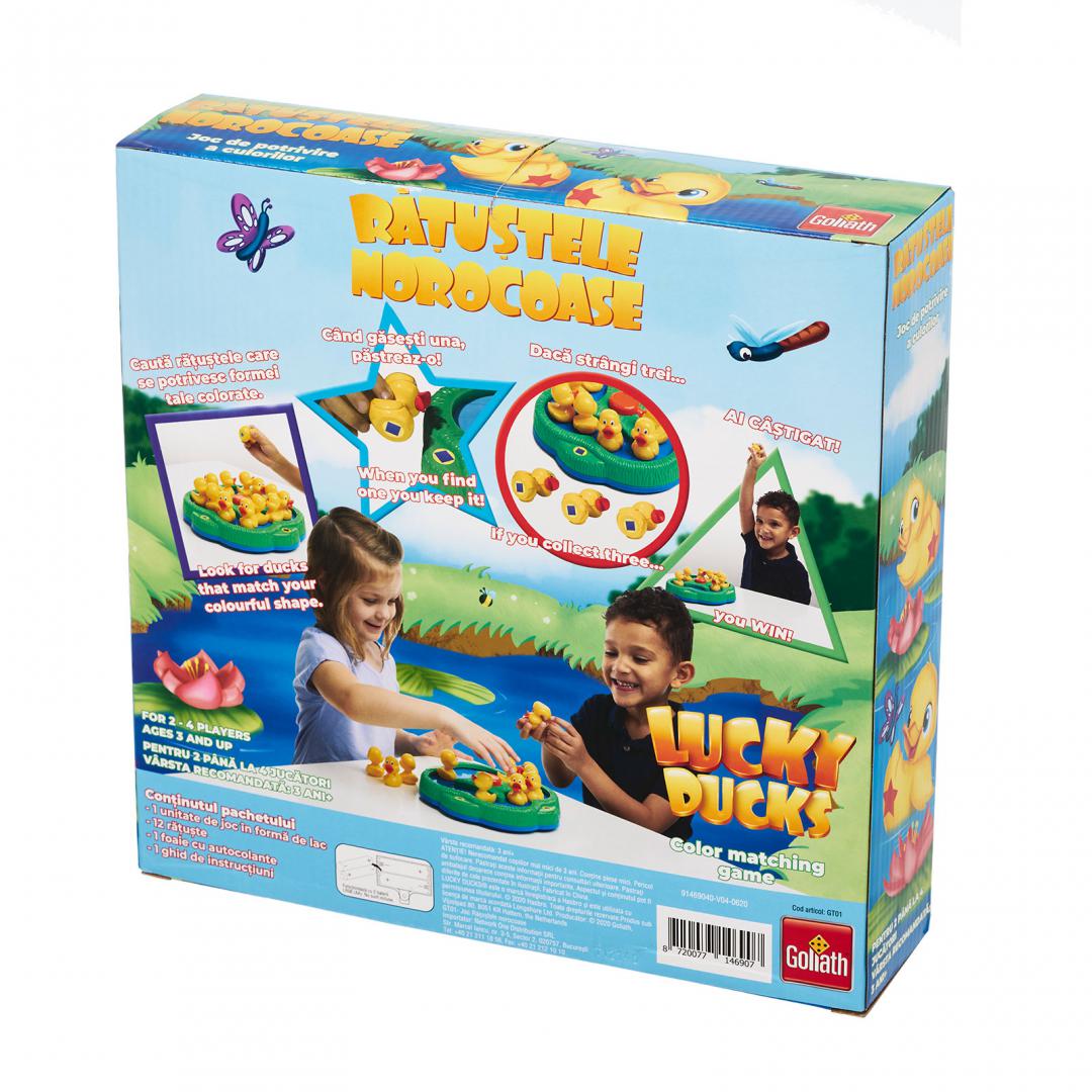 Acest joc excentric de memorare și potrivire combină abilitățile de dezvoltare ale celor mici cu distracție din „Primul meu joc”. Mută-te pe iazul circular, iar rățuștele vor începe să înoate – partea de jos a fiecărei rățuște are o altă formă și culoare. Pe rând, jucătorii vor ridica o rățușcă și vor verifica culoarea și forma; dacă aceasta se potrivește formei colorate din dreptul său, jucătorul va păstra rățușca. Dacă nu se potrivește, o va pune la loc. Câștigă primul jucător care strânge 3 rățuște având forma adecvată.