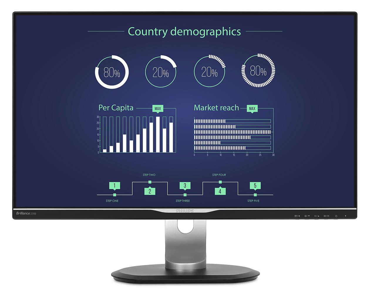 Monitor 25″ PHILIPS 258B6QUEB cu statie de andocare USB-C, IPS, WLED ,16:9, WQHD 2560*1440, 60hz, 5 ms, 350 cd/m2, 1000:1/ 20M:1, 178/178,HDMI, VGA, USB, DVI, DP, pivot, VESA, Speakers, Kensington lock, Black