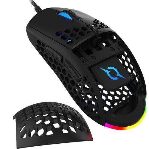 Mouse AQIRYS Doradus, cu fir, 6 butoane, interfata USB 2.0, 12.000 dpi, lungime cablu 1.8m, cablu fabricat din material moale, cu iluminare RGB, greutate 63g (fara cablu), negru