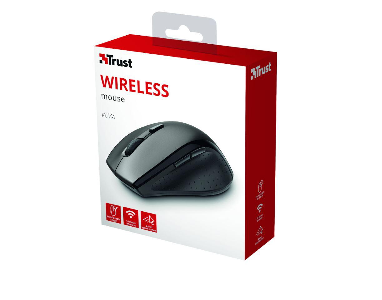 Mouse fara fir Trust Kuza Wireless Mouse Black, USB 2.0, 2.4 GHz, 2 AAA batteries, 6 butoane.