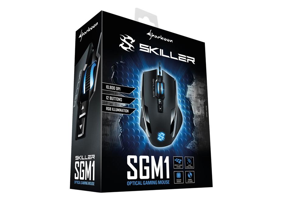 Mouse Gaming Sharkoon Skiller SGM1, Wired, Right handed form factor, 10,800 DPI optical sensor, Programmable Buttons: 12, 1,000 Hz Ultrapolling, IPS 150/30g, Connector: USB, Black