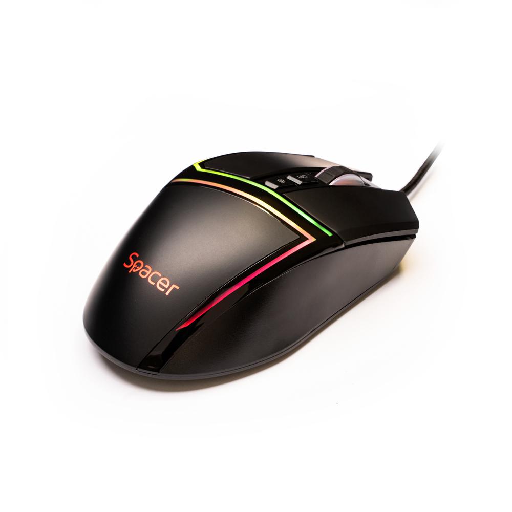 MOUSE Spacer Gaming SPGM-ALIEN-PRO cu fir, USB, optic, 12.000 dpi, butoane/scroll 7/1, iluminare RGB, negru