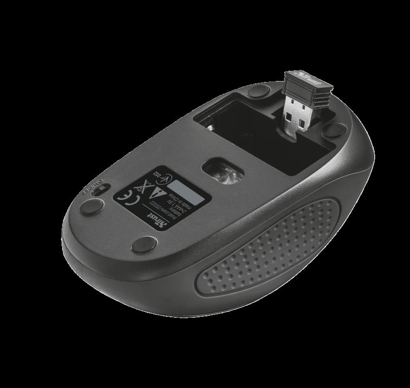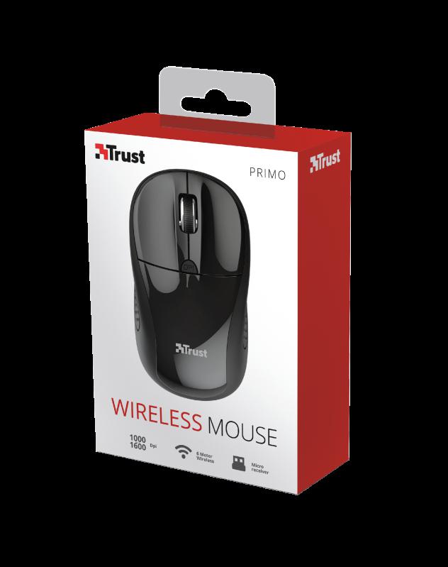 Mouse fara fir Trust Primo Wireless Mouse – black Specifications General Height of main product (in mm) 95 mm Width of main product (in mm) 55 mm Depth of main product (in mm) 40 mm Total weight 75 g Formfactor compact Ergonomic design no Connectivity Connection type wireless Bluetooth no Wireless protocols RF 2.4GHz Wireless range 6 m Receiver included yes USB version 1.0 Connector type USB Features Silent click no Gliding pads UPE Software no USB receiver storable yes DPI adjustable yes Power saving yes Gaming Designed for gaming no Lighting Lights no Power Batteries included yes Battery life (months) 6 month Rechargeable battery no Number of batteries 2 Wireless transmission power (mW) 1 mW Battery type (AA, AAA, etc.) AAA Input Power source battery Sensor DPI 1000, 1600 Max. DPI 1600 dpi Sensor technology optical Compatibility Compatible Device Types laptop, pc Compatible Software Platforms Windows, Mac OS, Chrome OS Control Grip type claw Horizontal scrolling no Controls left, right, mid, dpi Number of buttons 4 DPI button yes On/off button yes Programmable buttons no Adjustable weight no Suitable surface non-reflective flat surface Left-right handed use right-handed, left-handed Scroll wheel yes Trackball no