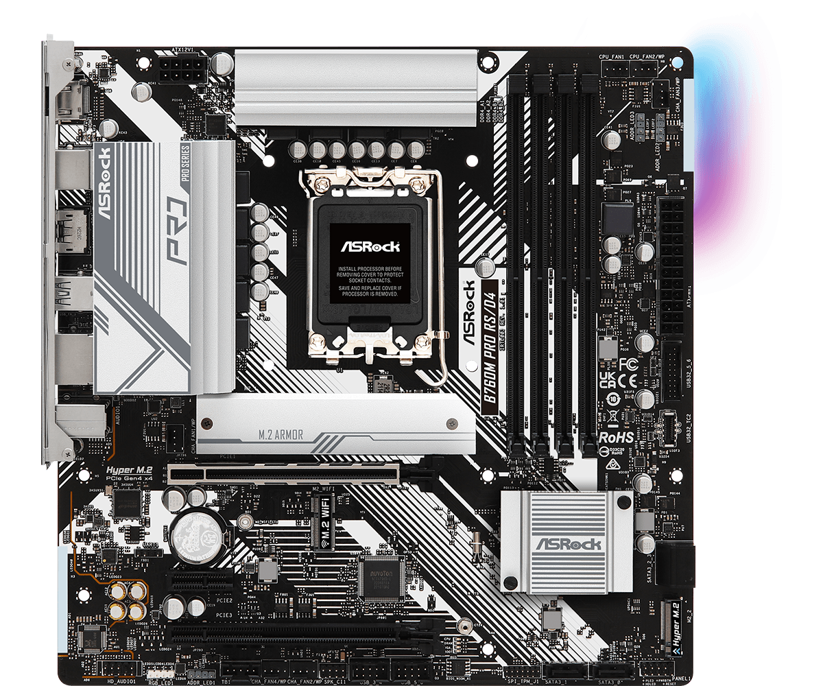 Placa de baza Asrock B760M Pro RS LGA1700, 4x DDR4, frecventa maxima 5333MHz, 1x DisplayPort, 1x HDMI, 2x PCIe x16, 1x PCIe x1, 2x M.2, 4x SATA3 6Gbs, LAN 2.5Gbps, microATX