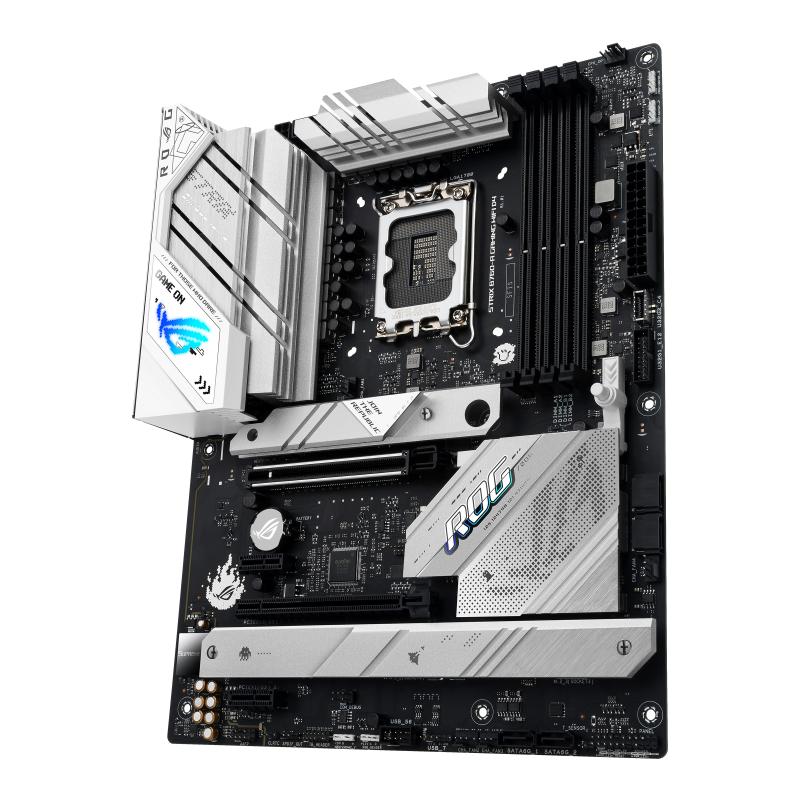 Placa de baza ASUS ROG STRIX B760-A DDR4 WIFI LGA1700 CPU Intel® Socket LGA1700 for 13th Gen Intel® Core™ Processors & 12th Gen Intel® Core™, Pentium® Gold and Celeron® Processors* Supports Intel® Turbo Boost Technology 2.0 and Intel® Turbo Boost Max Technology 3.0** * Refer to www.asus.com for CPU support list. ** Intel® Turbo Boost Max Technology 3.0 support depends on the CPU types. Chipset Intel® B760 Chipset Memory 4 x DIMM, Max. 128GB, DDR4 5333(OC)/5066(OC)/5000(OC)/4800(OC)/4600 (OC)/4400(OC)/4266(OC)/4000(OC)/3733(OC)/3600(OC)/3466(OC)/3400(OC)/3333 (OC)/3200/3000/2933/2800/2666/2400/2133 Non-ECC, Un-buffered Memory* Dual Channel Memory Architecture Supports Intel® Extreme Memory Profile (XMP) OptiMem II * Supported memory types, data rate(Speed), and number of DRAM modules vary depending on the CPU and memory configuration, for more information refer to www.asus.com for memory support list. Graphics 1 x DisplayPort** 1 x HDMI® port*** * Graphics specifications may vary between CPU types. Please refer to www.intel.com for any updates. // Please refer to AMD CPU specifications. ** Supports max. 4K@60Hz as specified in DisplayPort 1.4 *** Supports 4K@60Hz as specified in HDMI 2.1. **** VGA resolution support depends on processors’ or graphic cards’ resolution. Expansion Slots Intel® 13th & 12th Gen Processors 1 x PCIe 5.0 x16 slot Intel® B760 Chipset 1 x PCIe 3.0 x16 slot (supports x4 mode)* 2 x PCIe 3.0 x1 slots* * PCIe x1(G3)_1 and PCIe x1(G3)_2 slots share bandwidth with PCIe x16 (G3). When PCIe x1(G3)_1 or PCIe x1(G3)_2 slot is operating, PCIe x16 (G3) will only supports x2 mode. – To ensure compatibility of the device installed, please refer to https://www.asus.com/support/ for the list of supported peripherals. Storage Total supports 3 x M.2 slots and 4 x SATA 6Gb/s ports* Intel® 13th & 12th Gen Processors M.2_1 slot (Key M), type 2242/2260/2280 (supports PCIe 4.0 x4 mode) Intel® B760 Chipset M.2_2 slot (Key M), type 2242/2260/2280/22110 (supports PCIe 4.0 x4 mode) M.2_3 slot (Key M), type 2242/2260/2280 (supports PCIe 4.0 x4 mode) 4 x SATA 6Gb/s ports * Intel® Rapid Storage Technology supports SATA RAID 0/1/5/10. Ethernet 1 x Intel® 2.5Gb Ethernet ASUS LANGuard // TUF LANGuard