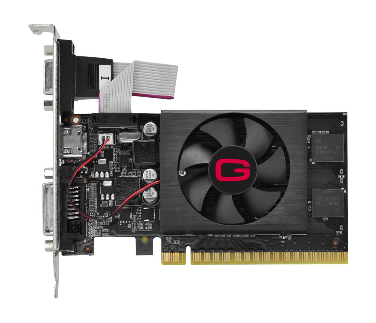 Placa video Gainward nVidia GeForce GT 710 2GB D5 471056224-1518 4710562241518 Product Name GeForce® GT 710 2GB SilentFX Barcode 426018336-3576 GPU NVIDIA GeForce® GT 710 GPU Clockspeed 954 MHz Memory 2048 MB DDR3 (64 bits) Memory Clockspeed 800 MHz Bandwidth 12.8 GB/sec Bus PCI-Express 2.0 Cooling 2-Slot Heatsink Video-Features HDMI Connectivity DVI-D + VGA Product Size 115mm x 69mm