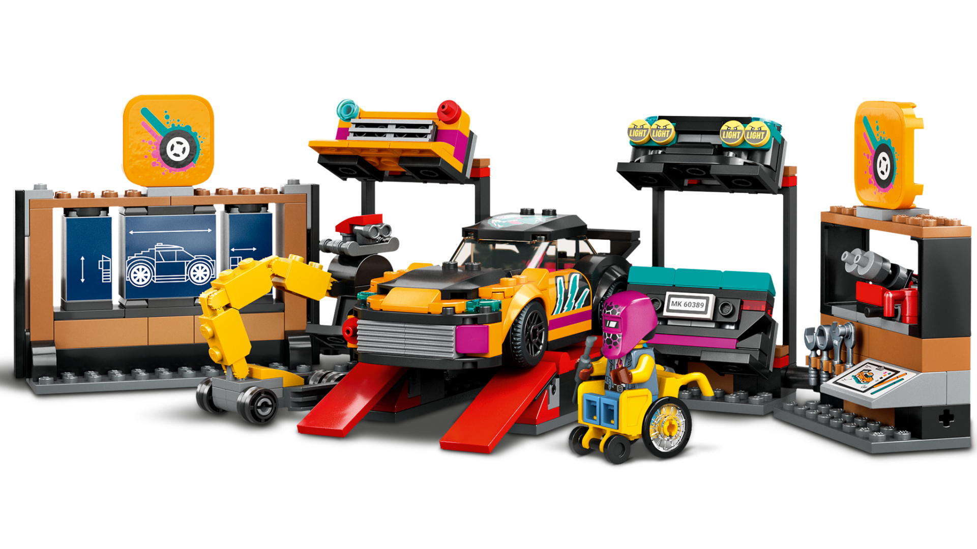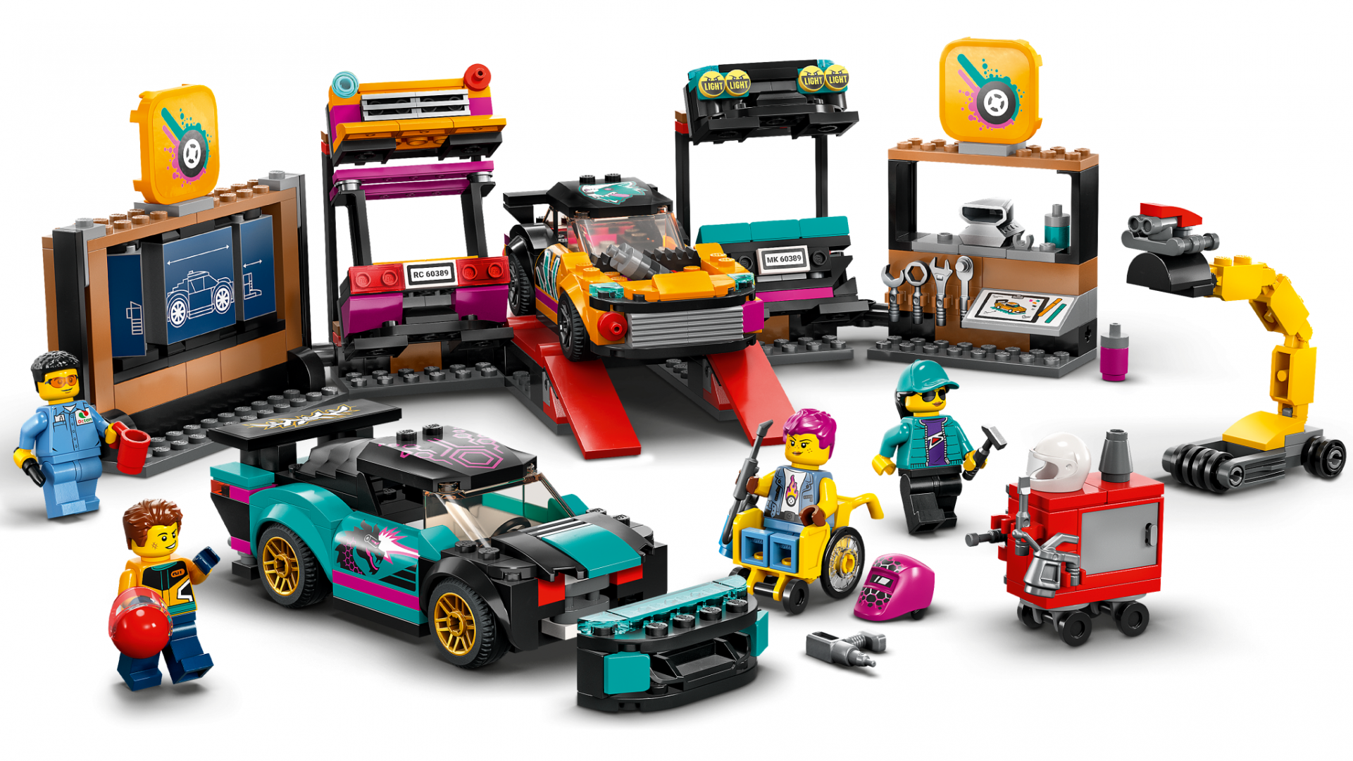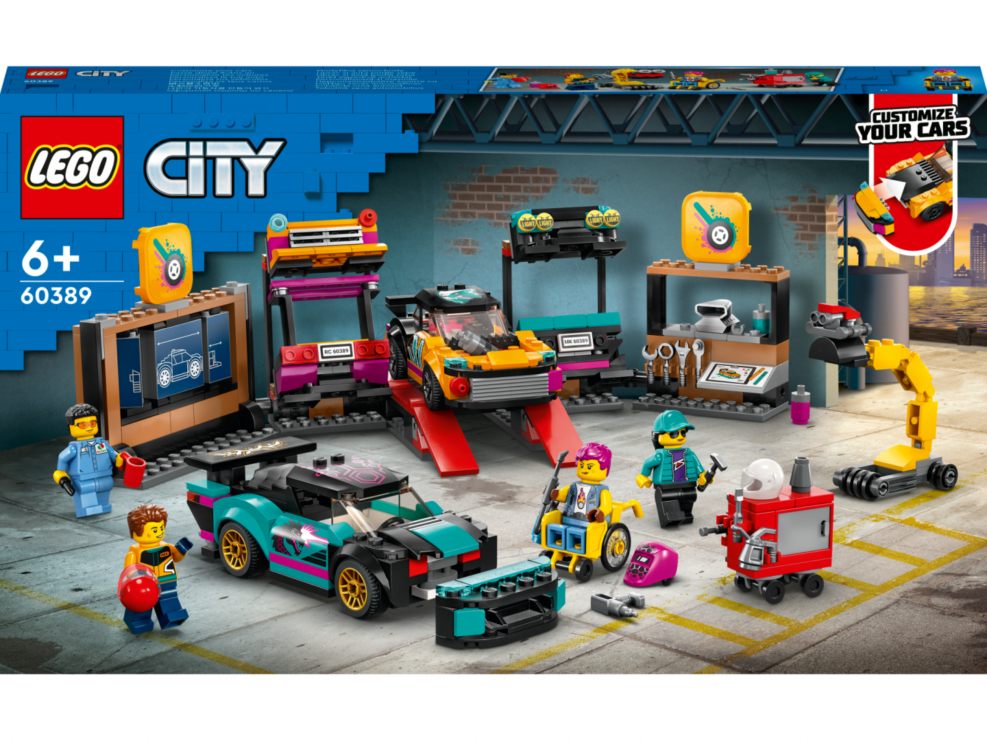 Să personalizezi mașini devine o joacă de copii cu setul LEGO® City Service pentru personalizarea mașinilor (60389), care conține un atelier cu o mulțime de funcții grozave și 2 mașini de jucărie personalizabile. Copiii pot alege dintr-o gamă de motoare și secțiuni modulare pentru față și spate, cu diferite faruri, bare de protecție și spoilere, pentru a crea propriile modele. Setul include 2 minifigurine mecanici și 2 minifigurine șoferi, cu accesorii amuzante. Instrucțiunile interactive sporesc distracția la construit Acest set de joc 6+ este însoțit de un ghid de construcție ilustrat ușor de urmat și de aplicația LEGO Builder, un ghid de construcție digital interactiv, cu instrumente intuitive de zoom și rotire care permit copiilor să-și vizualizeze modelele din toate unghiurile pe măsură ce le construiesc. LEGO City Vehicule grozave – Jucării cool pentru copii Copiii cresc înconjurați de vehicule și mașini uimitoare, iar seturile de construcție LEGO City Vehicule grozave le permit să exploreze îndeaproape aceste modele realiste, însoțite de personaje amuzante care inspiră joaca fantezistă fără limite.