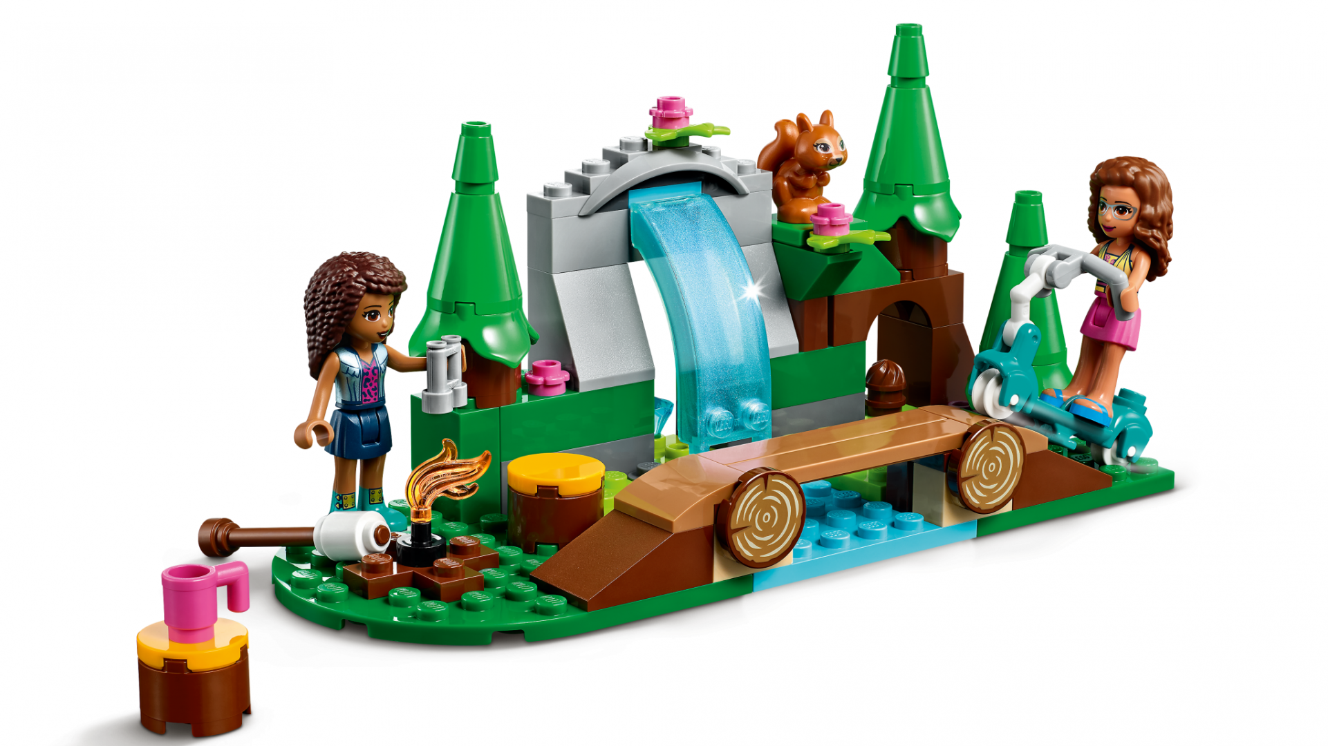 Permite micilor iubitori de aer liber sa aduca inauntru pasiunea pentru natura cu LEGO Friends (41677) Cascada din padure, unde isi pot imagina ca exploreaza padurea cu prietenii.