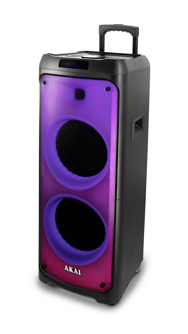 | Boxa portabila Akai SPEAKER_1010, cu bluetooth 4.2, putere 100W, frecventa 87.5 Hz – 108KHz, baterie Li-ion 7000 mAh, cu slot microsD, autonomie 3-5h, timp de incarcare 4-6h, functie de inregistrare, cu display LED, cu iluminare LED, neagra |