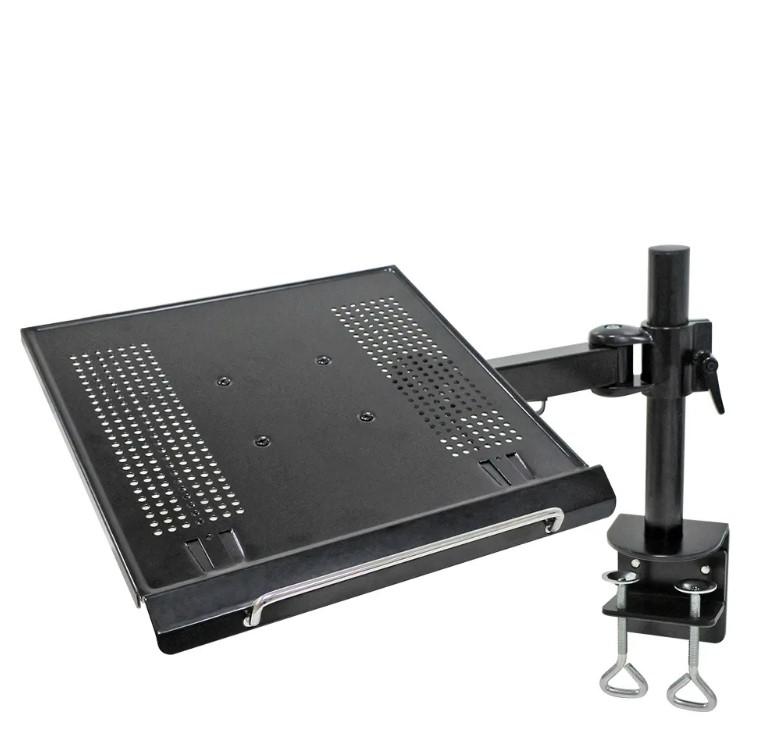 Neomounts by Newstar NOTEBOOK-D100 laptop desk mount Specifications General Min. screen size*: 10 inch Max. screen size*: 22 inch Min. weight: 0 kg Max. weight: 10 kg Screens: 1 Functionality Height adjustment: 0- 26 cm Depth adjustment: 0 – 57 cm Type: Full motion, Tilt, Swivel Tilt (degrees): 30° Swivel (degrees): 180° Adjustment type: Manual