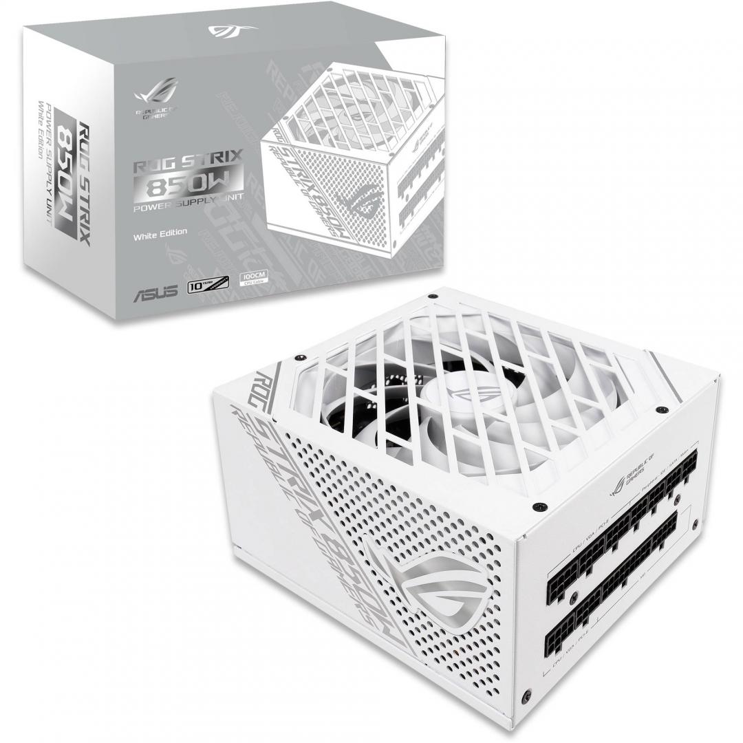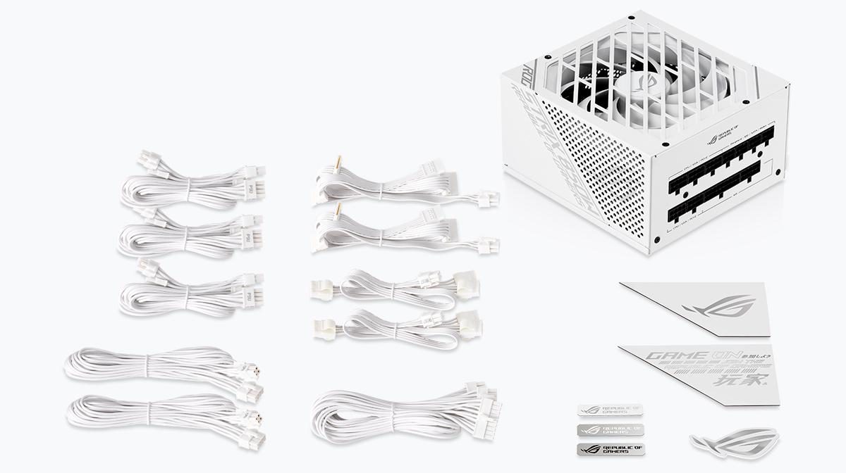 Sursa ROG Strix 850W White Edition are cabluri modulare cu maneci, o varietate de decalcomanii si este imbracata pentru a completa estetica unei platforme de jocuri albe. Radiatoarele masive ROG se trag din puternica serie ROG Thor si designul ventilatorului Axial-tech de pe placile noastre grafice premium NVIDIA RTX ™ apar, de asemenea. Sub suprafata, MOSFET-urile RDS (pornite) reduse si condensatoarele japoneze premium preiau livrarea de energie cu usurinta. Rezultatul este o sursa de alimentare incredibil de silentioasa si eficienta, cu rezerve pentru a face fata celor mai intense scenarii de joc.