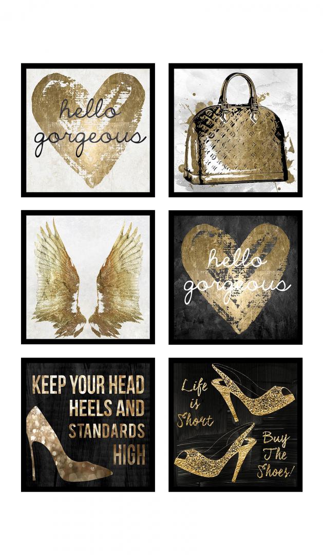 Set 6 tablouri decorative Gold Heart