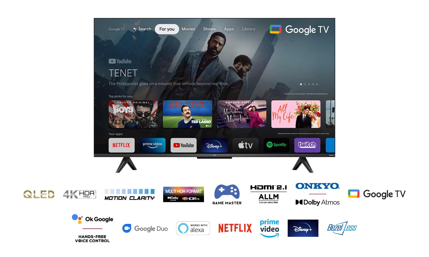 TV TCL, 43C635, 2022, 43″-108CM, Qled QuantummDot, Smart TV, 4K, Black, Flat, Google TV, Mirroring iOS, Android, AiPQ 2.0 Engine, HD R10+/HLG/Dolby Vision IQ, Dolby AC-4, Dolby Atmos, Dolby TrueHD, 50/60Hz+FRC, DVB-T2/C/S2, 2, 2 x 10W, Subwoofer integrat: Nu, Wi-Fi, Bluetooth, 1 x Jack 3.5 mm, 1 x USB 3.0, 1 x RJ-45, 2 x HDMI 2.1, 1 x Digital Optical Out, 1 x HDPC 2.3, 200 x 200, Standard Remote, QWERTY Remote, 2 AAA batteries, Power cable, Table support