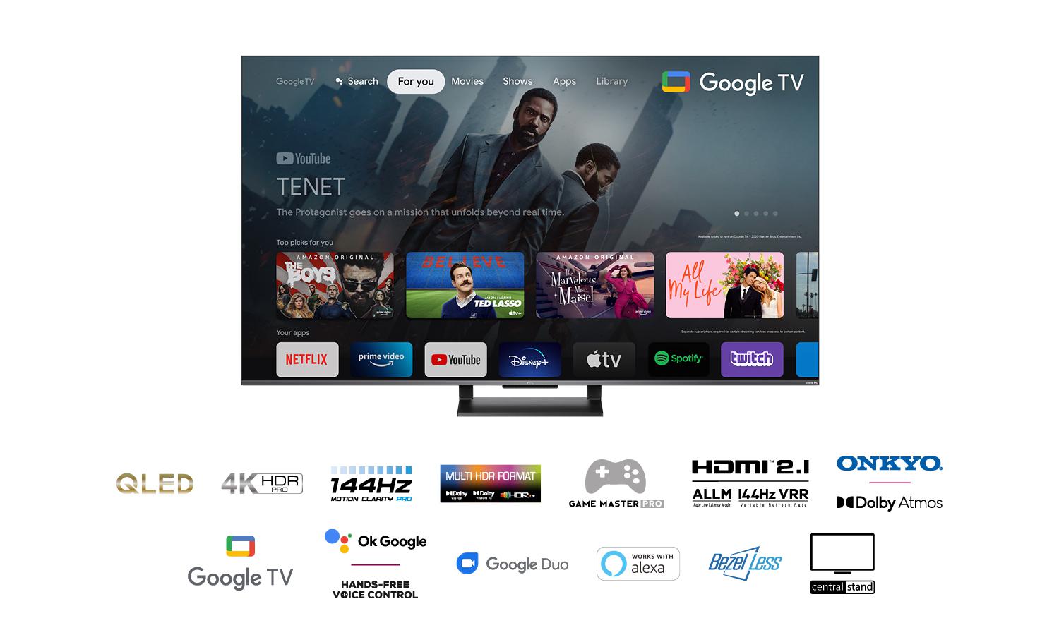 TV TCL, 65C735, 2022, 65″-164CM, Qled QuantummDot, Smart TV, 4K, Grey, Flat, Google TV, Mirroring iOS, Android, AiPQ 2.0 Engine, HDR 10+/HLG/Dolby Vision IQ, Dolby AC-4, Dolby Atmos, Dolby TrueHD, 100/120/144Hz, DVB-T2/C/S2, 2, 2 x 10W, Subwoofer integrat: Nu, Wi-Fi, Bluetooth, 1 x Jack 3.5 mm, 1 x USB 2.0, 1 x RJ-45, CI slot, 4 x HDMI 2.1, 1 x Digital Optical Out, 1 x HDPC 2.3, 300 x 300, Standard Remote, QWERTY Remote, 2 AAA batteries, Power cable, Table support